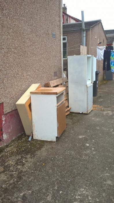 Among the items left in an alley between Duke Street and Queen Street were a fridge/freezer, a mattress, a carpet, a chest of drawers, a chair and a television.