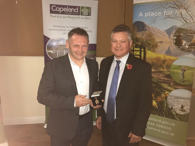 Copeland’s councillors voted in May to bestow this honour on Mr McKee. The presentation event was supported by Mr McKee’s employers, Sellafield Ltd.