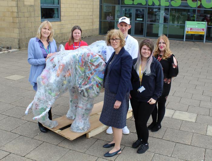 The impressive elephant sculpture, made from recycled materials by local artist Susan Jackson and students from Lakes College, was at the Beacon Museum for the bank holiday. The 1.4m-tall piece is filled with used cans and plastic bottles and highlights the fact that since the council launched a revamped recycling collection a year ago, it has collected materials equalling the weight of 650 elephants.