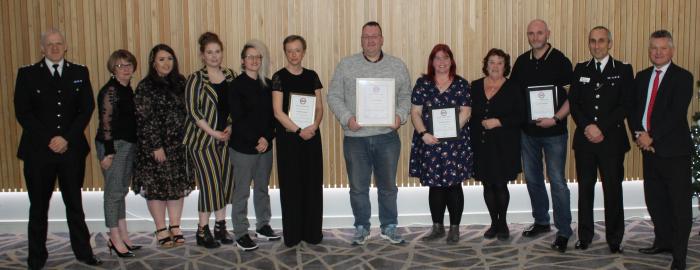 Presenting the awards were Assistant Chief Constable Andy Slattery, Superintendent Matt Kennerley, and Mike Starkie, Mayor of Copeland.